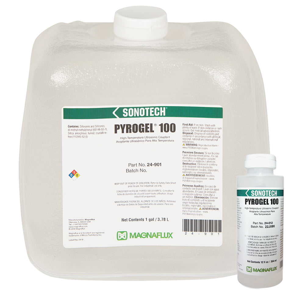 Pyrogel® is a broad temperature range couplant for thickness gauging, flow metering, acoustic emissions testing and flaw detection/sizing. These products contain no polymers and resists drying, making them an excellent choice for long term flow metering applications.