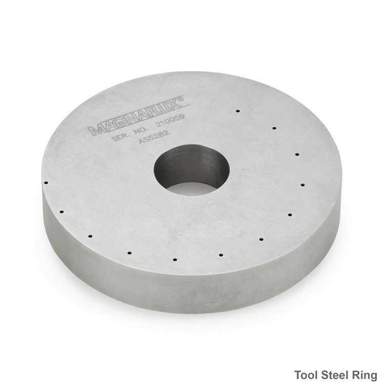 The Magnaflux AS-5282 Tool Steel Ring (formerly Ketos Ring) is a magnetic particle test piece with pre-drilled holes to simulate subsurface discontinuities. It offers a reliable method of verifying magnetic particle system performance when actual test parts with discontinuities are not available.