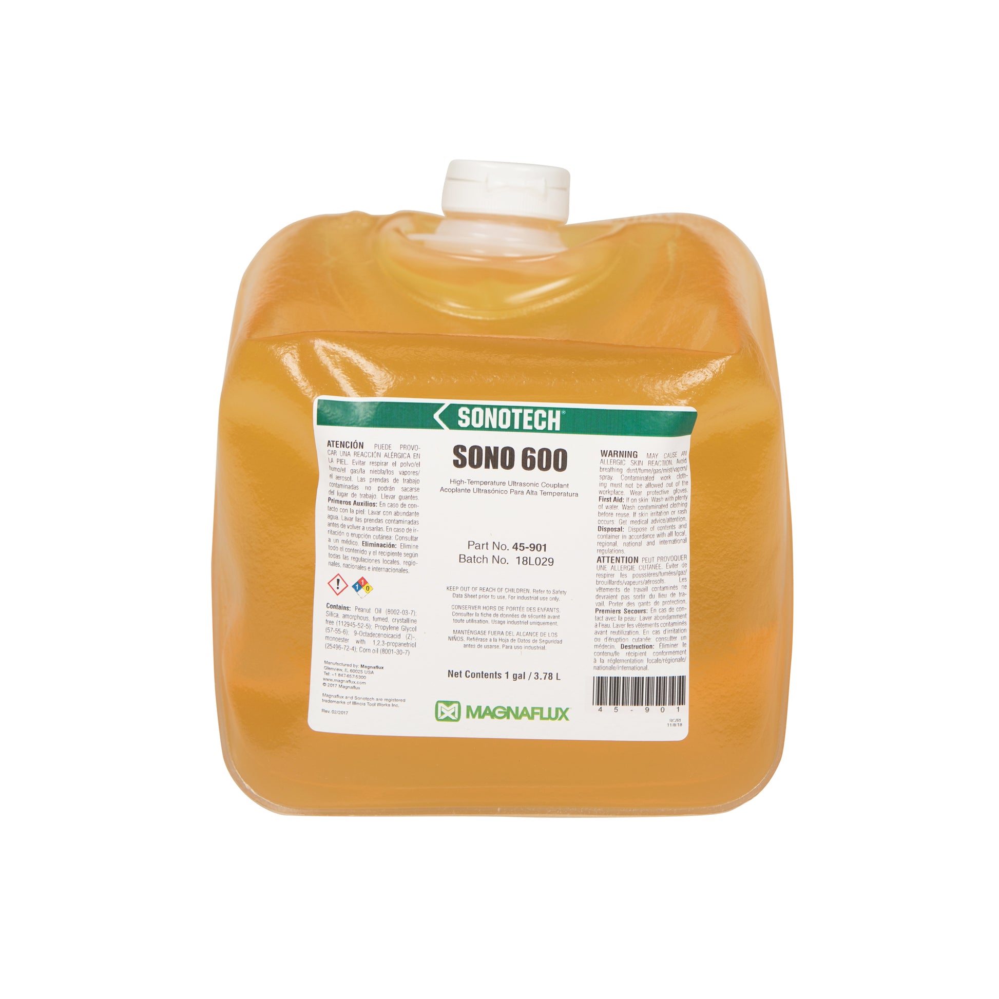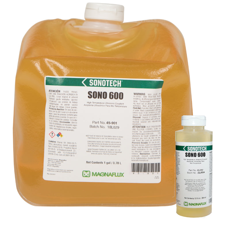 Sono 600 is a versatile, multi-purpose couplant with a wide operating temperature range for flaw detection, thickness gauging and acoustic emission testing in petrochemical, power generation, automotive, aerospace, food processing equipment and pharmaceutical manufacturing.