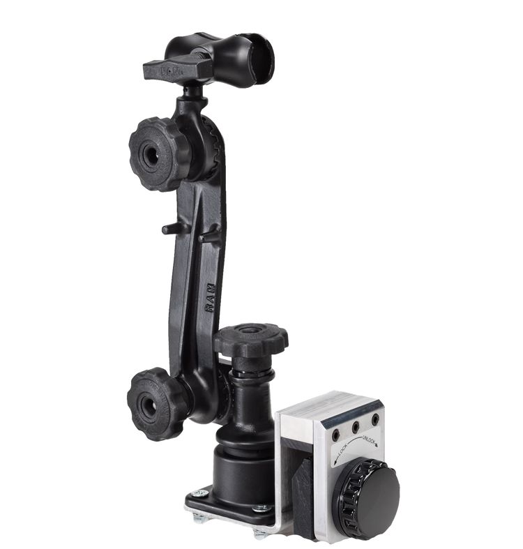 Attaches directly to Magnaflux wet bench equipment. Clamp assembly may be removed to attach to any flat surface. 3.0 in / 7.6 cm square base, 15 in / 38 cm extension. Includes a mounting peg handle adaptor p/n 622595 that fits the EV6000, EV6500, and older ZB-100F series lamps, and an easy set screw to lock the lamp in place or unlock for handheld use. Modular extensions with locking ball joints place the lamp exactly where it is needed.